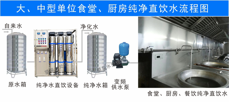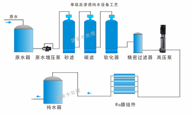 源水泵      砂濾器       碳濾器     軟水器    精濾保安濾器      RO反滲透主機      純水箱    (紫外線殺菌器      各個管線飲水機)