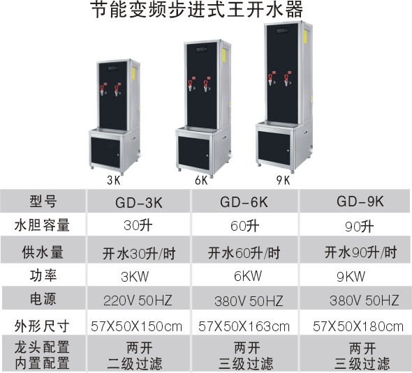 產(chǎn)品名稱:智能變頻節(jié)能步進(jìn)式開水器產(chǎn)品型號:GD-3K,GD-6K,GD-9K外形尺寸: