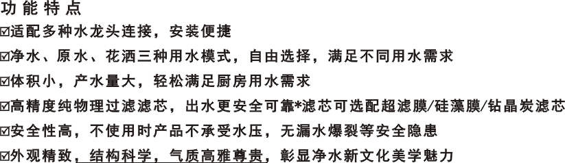 產(chǎn)品名稱:豪華水龍頭凈水器GD-H產(chǎn)品型號(hào):GD-H外形尺寸:150X145mm