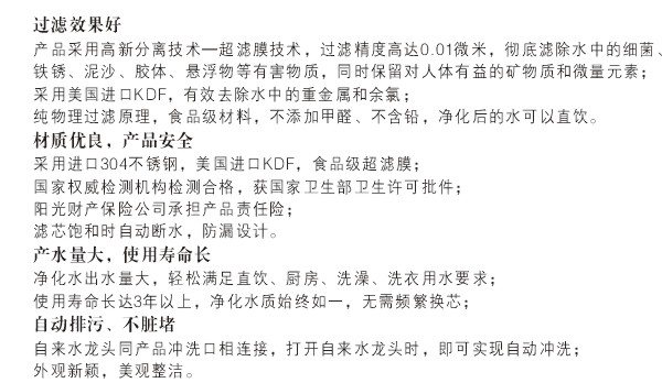 | 使用壽命: | ≥3年(當(dāng)原水為市政自來(lái)水時(shí),根據(jù)水質(zhì)差異,濾芯使用壽命不同,但一般不低于3年) |