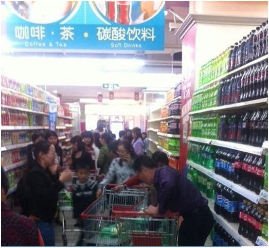 網友所拍攝的當地大量市民前往超市買水。同時靖江市迅速啟動應急處置預案。經環保部門檢測,靖江牧城生態園備用水源水質合格,可以啟用。預計下午五點之前,將全面恢復生活供水,請廣大市民放心。